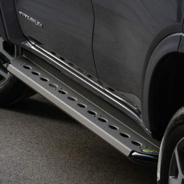 The Ironman 4×4 Side Steps – Dimple Style (Part Number SS095-D). Ironman 4×4 Side Steps are made from high-quality steel and chassis mounted for strength, designed to protect the sill of your vehicle from damage offroad. Powder-coated for longevity, the dimple style provides drainage on steps to avoid water build-up. All Ironman 4×4 side steps and rails are Airbag compatible to ensure safety is not compromised, making it a must-have accessory for any serious four-wheel driver.